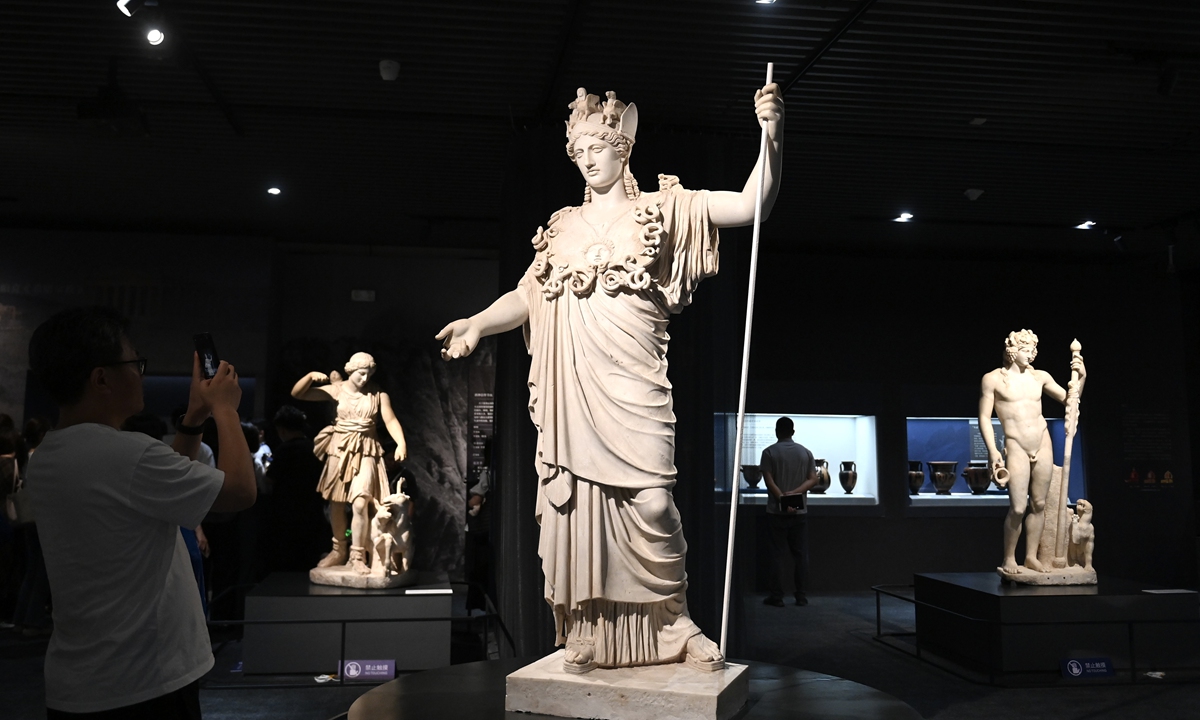 Visitors explore an exhibition of ancient Greek artifacts at the Anhui Museum in Hefei, East China's Anhui Province, on July 9, 2024. Around 100 Greek artifacts, loaned from the National Archaeological Museum of Naples, Italy, are on display to showcase the social and cultural aspects of ancient Greece. Photo: VCG