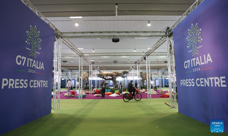 This photo taken on June 12, 2024 shows a view of the media center of the Group of Seven (G7) summit in Bari, Apulia Region, Italy. The G7 summit is to be held in the southern Apulia region on June 13-15. Photo: Xinhua