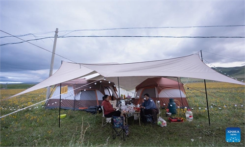 A farmer feeds ostriches in a community in Qianxi, Southwest China's Guizhou Province on August 6, 2024. Local farmers have been vigorously developing the breeding industry in a bid to promote rural revitalization and high-quality development. Photo: cnsphoto