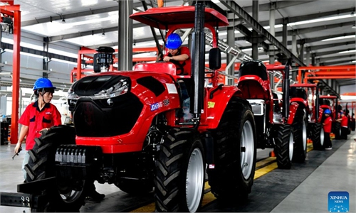 A worker at a photovoltaic panel factory in Suqian, East China's Jiangsu Province, checks solar panels for export markets on August 7, 2024. In the first half of 2024, the province's foreign trade stood at 2.68 trillion yuan ($373.19 billion), up 8.5 percent year-on-year, accounting for 12.7 percent of the national total during the period. Photo: VCG