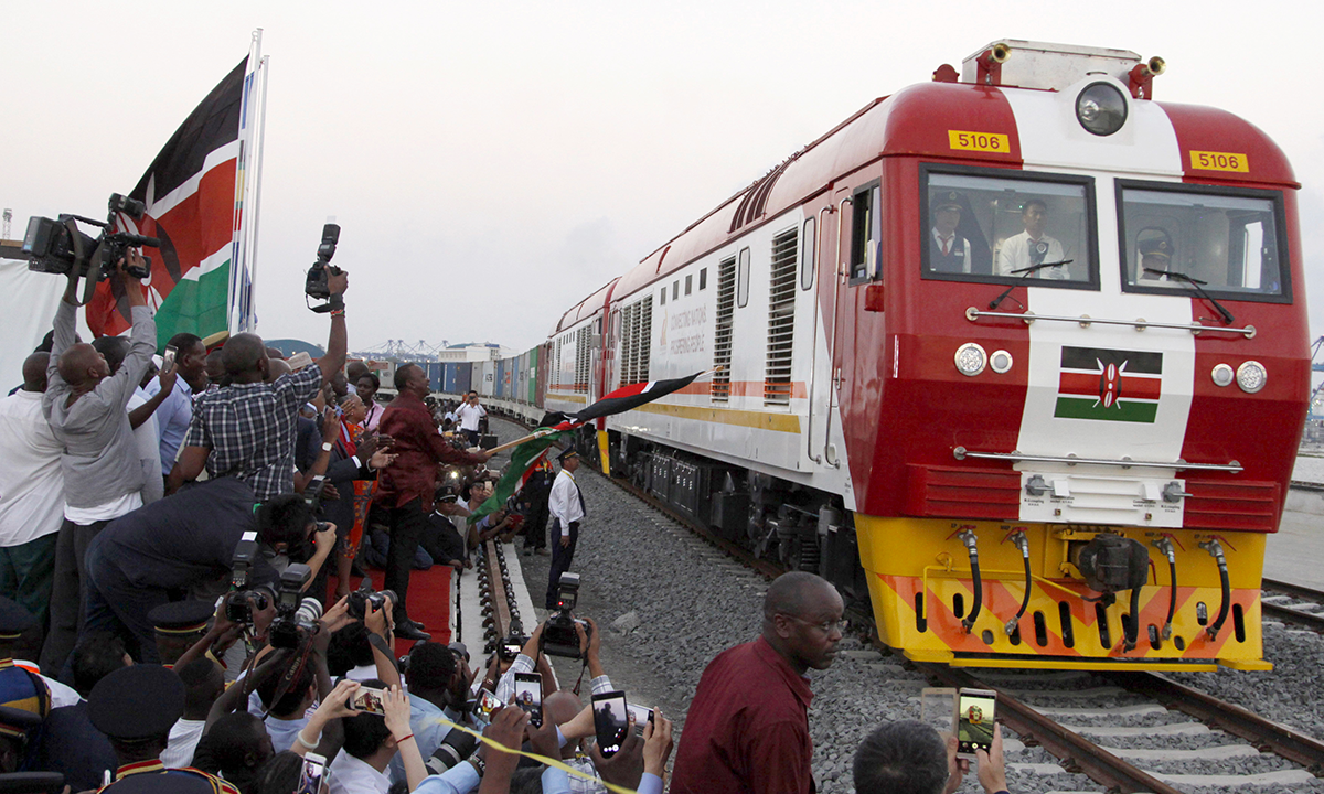 An SGR (Standard Gauge Railway) freight train departs from the port container depot in Mombasa, Kenya, on May 30, 2017. The SGR project in Kenya, constructed by a Chinese company, is an early achievement of the Belt and Road Initiative. Photo: VCG