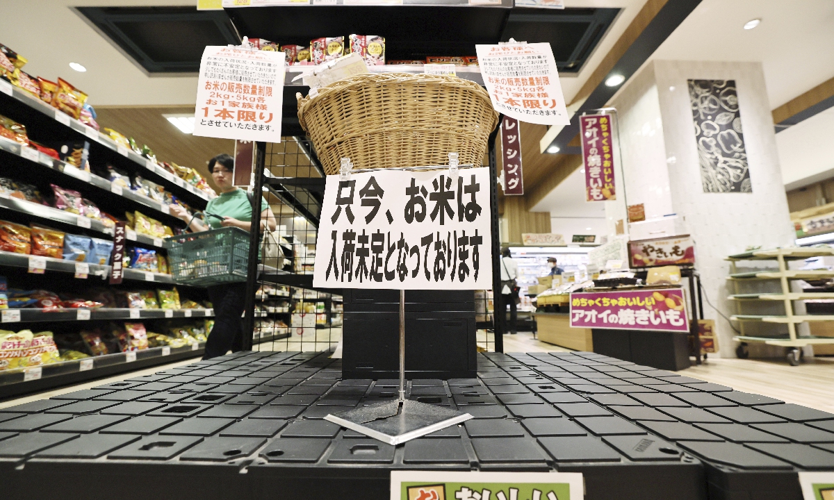 A notice is posted at a supermarket announcing the pending arrival of rice in Osaka, Japan on August 27, 2024. The rice shortage in Japan is caused by a combination of factors, including the climate, supply chain disruptions, and a sharp increase in demand due to an increase in inbound tourists. Photo: VCG