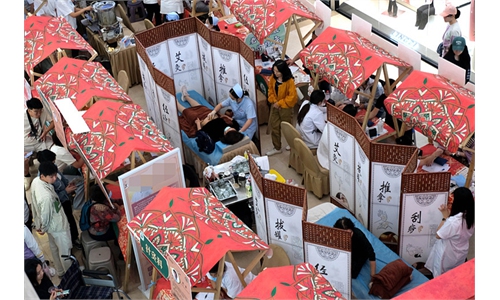 People stroll through a traditional Chinese medicine bazaar and visit traditional Chinese medicine clinics in Shenyang, Northeast China’s ...