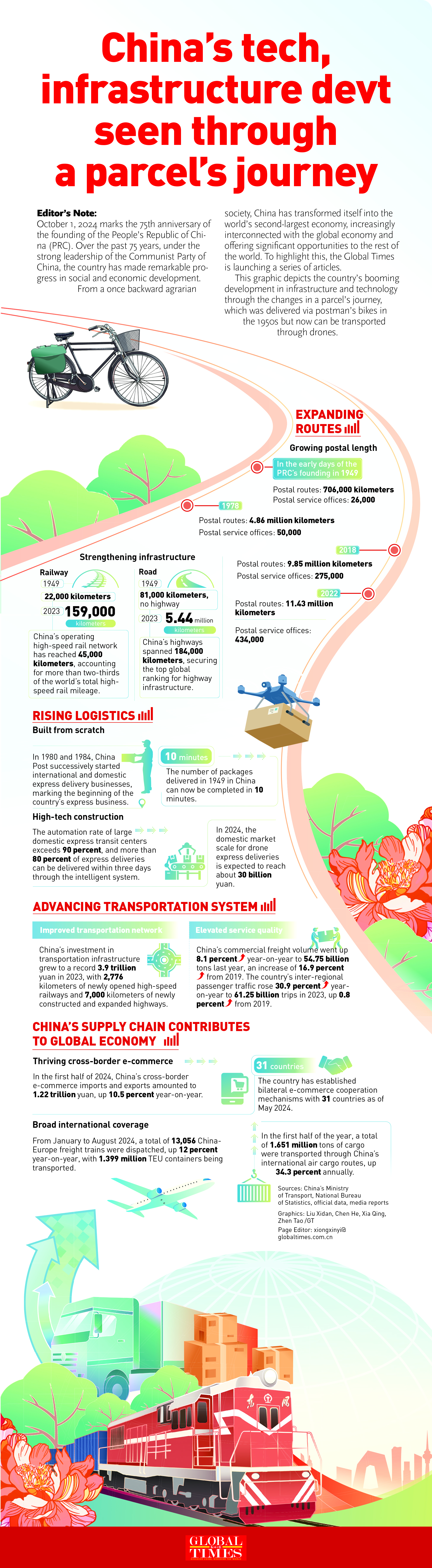 GraphicAnalysis: China's booming advancements in tech, infrastructure of 75 years seen through changes in a parcel's delivery:GT