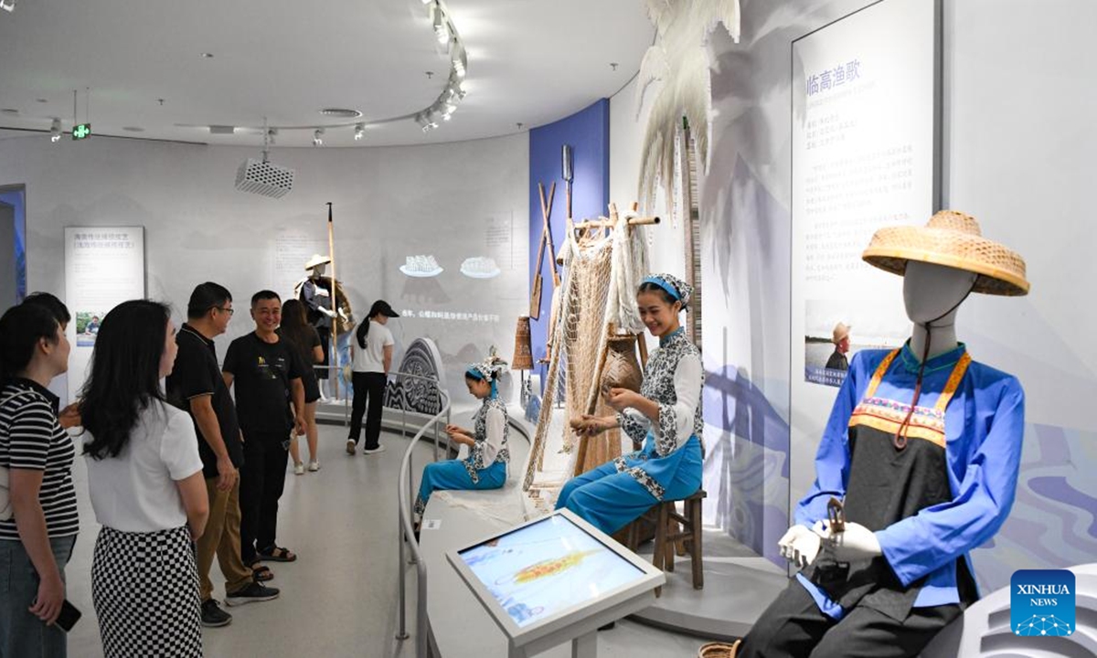 People visit the Hainan Intangible Cultural Heritage Exhibition Center in Haikou, south China's Hainan Province, Sept. 30, 2024. The exhibition center, one of the provincial capital's major public cultural projects, began trial operation on Monday and will last for one month. (Photo: Xinhua)