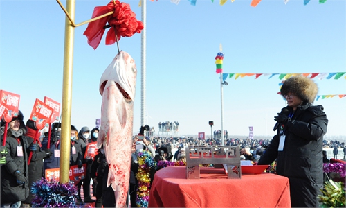 The first fish is caught in this year’s Fishing and Hunting Culture Tourism Festival in Songyuan, Northeast China’s ...