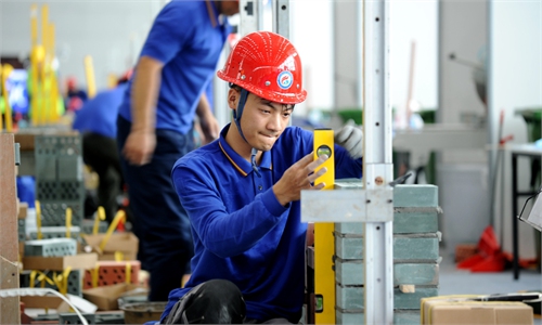 Competitors participate in a masonry project competition in Hefei, East China’s Anhui Province, on October 27, 2024. The ...