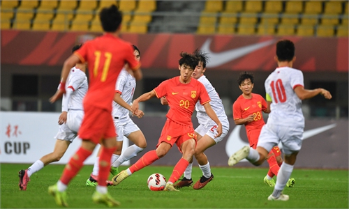 Zhang Yuning of the Chinese men's national football team celebrates scoring against Bahrain during the team's FIFA World Cup qualifier on November 14, 2024 in Riffa, Bahrain. After a stoppage-time goal, China won 1-0, keeping their hopes alive in the Asian qualifiers. Photo: VCG