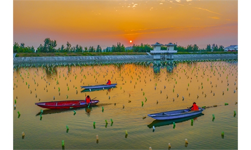Staff in East China’s Jiangsu Province are busy maintaining pearl mussel breeding facilities, on August 6, 2024. Photo: ...