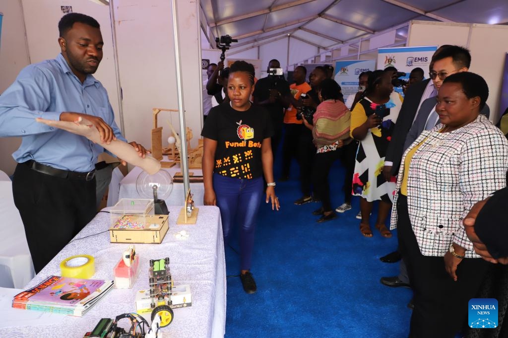 Students showcase their robotic designs during a job fair in Kampala, Uganda, on Nov. 21, 2024. The Ugandan government and Chinese technology firm Huawei on Thursday launched a two-day job fair aimed at promoting youth employment in the information, communication and technology (ICT) sector. (Photo by Ronald Ssekandi/Xinhua)