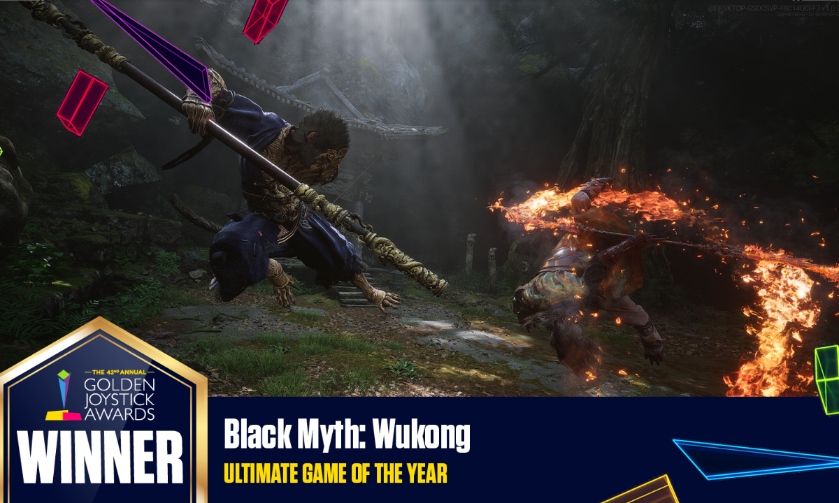 Black Myth: Wukong, secured top honors at the 2024 Golden Joystick Awards, winning "Ultimate Game of the Year" and "Best Visual Design," while earning additional nominations for "Best Game Direction," "Best Action Game," and "Best Art Direction."