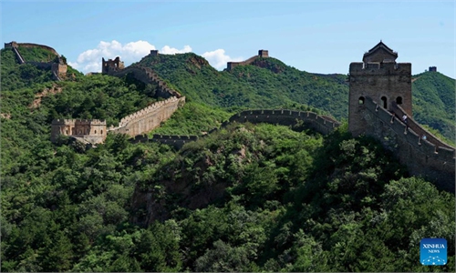 This aerial photo taken on June 20, 2023 shows willow forest belts along the Jinsha River in Shigu Town of Lijiang City, southwest China's Yunnan Province. Shigu Town of Lijiang City is located by a huge bend of the Jinsha River, the upper section of the Yangtze River in southwest China. The footprints of the Red Army are forever engraved in the town's culture and spirit(Photo: Xinhua)