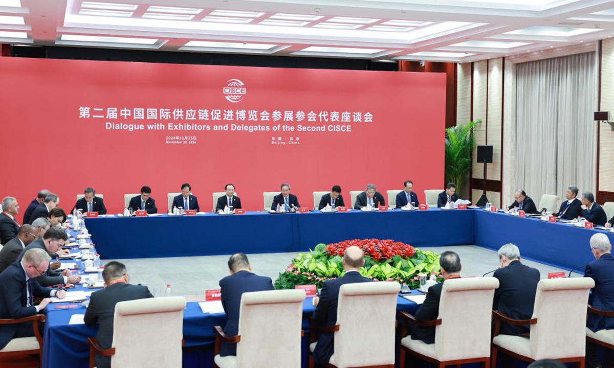 Chinese Premier Li Qiang attends a symposium with representatives of enterprises and organizations participating in the second China International Supply Chain Expo (CISCE), in Beijing, capital of China, Nov. 25, 2024.(Photo: Xinhua)