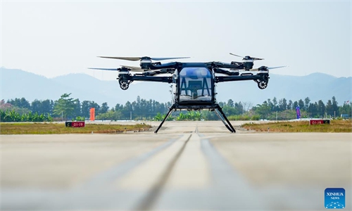Guests experience a monorail transit vehicle at the Jiangbei International Airport of Southwest China's Chongqing on November 28, 2024. The monorail will be put into use connecting two terminals at the airport. The vehicle is equipped with a self-driving system at the highest level of automation and features an independent power unit. This will be the first time that such a vehicle is used at an airport. Photo: VCG