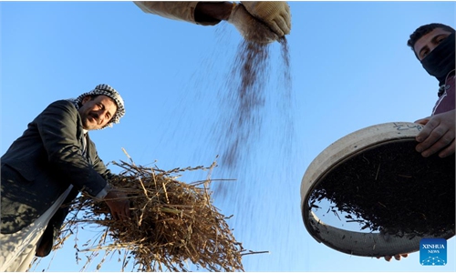 Farmers harvest sesame in Baghdad, Iraq