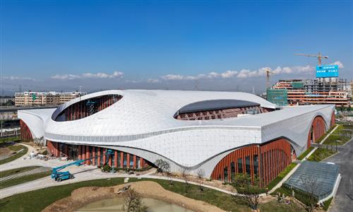 This photo taken on December 8, 2024, shows the aerial view of a project for hyper-gravity experiments in Hangzhou, East China's Zhejiang Province. Currently, the main engine of the first centrifuge for hyper-gravity experiments has been installed. The project will mark the completion of a 1,300-gravity ton model machine, a 100-gravity ton validation machine and a data center within this year, and enter the first stage of trial operation as planned. Photo: VCG
