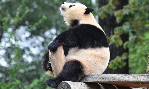 Giant panda Xiao Qi Ji, born in the US, enjoys an afternoon at the Wolong Shenshuping Giant Panda Base in Aba Tibetan and Qiang Autonomous Prefecture, Southwest China's Sichuan Province, on November 27, 2024. Photo: Shan Jie/GT