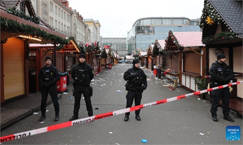 Local people gather at Johannis Church to mourn and pay tribute to the victims on December 21, 2024, one day after the deadly attack at the Christmas market in Magdeburg, Germany. A driver drove into a group of people at the market, killing at least five and injuring 200 others. Photo: VCG