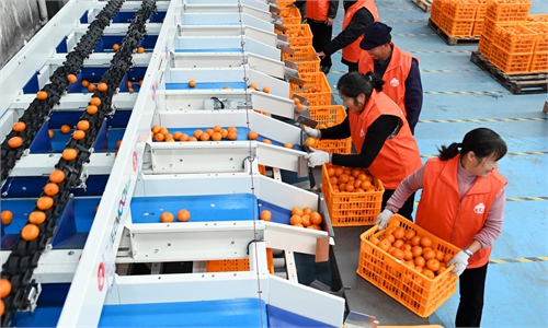 A worker inspects production of color steel sheet products at a plant in Nantong, East China's Jiangsu Province on December 24, 2024. In the first 10 month, the province's industrial production saw a stable performance, with value added of industrial firms above the designated size growing by 7.6 percent year-on-year, according to media reports. Photo:VCG