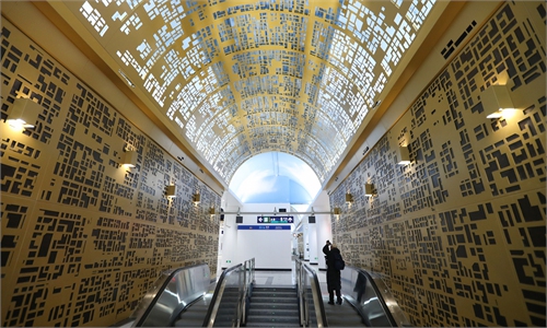 A passenger takes a photo of the newly opened Anhua Bridge Station on Line 12 in Beijing on ...