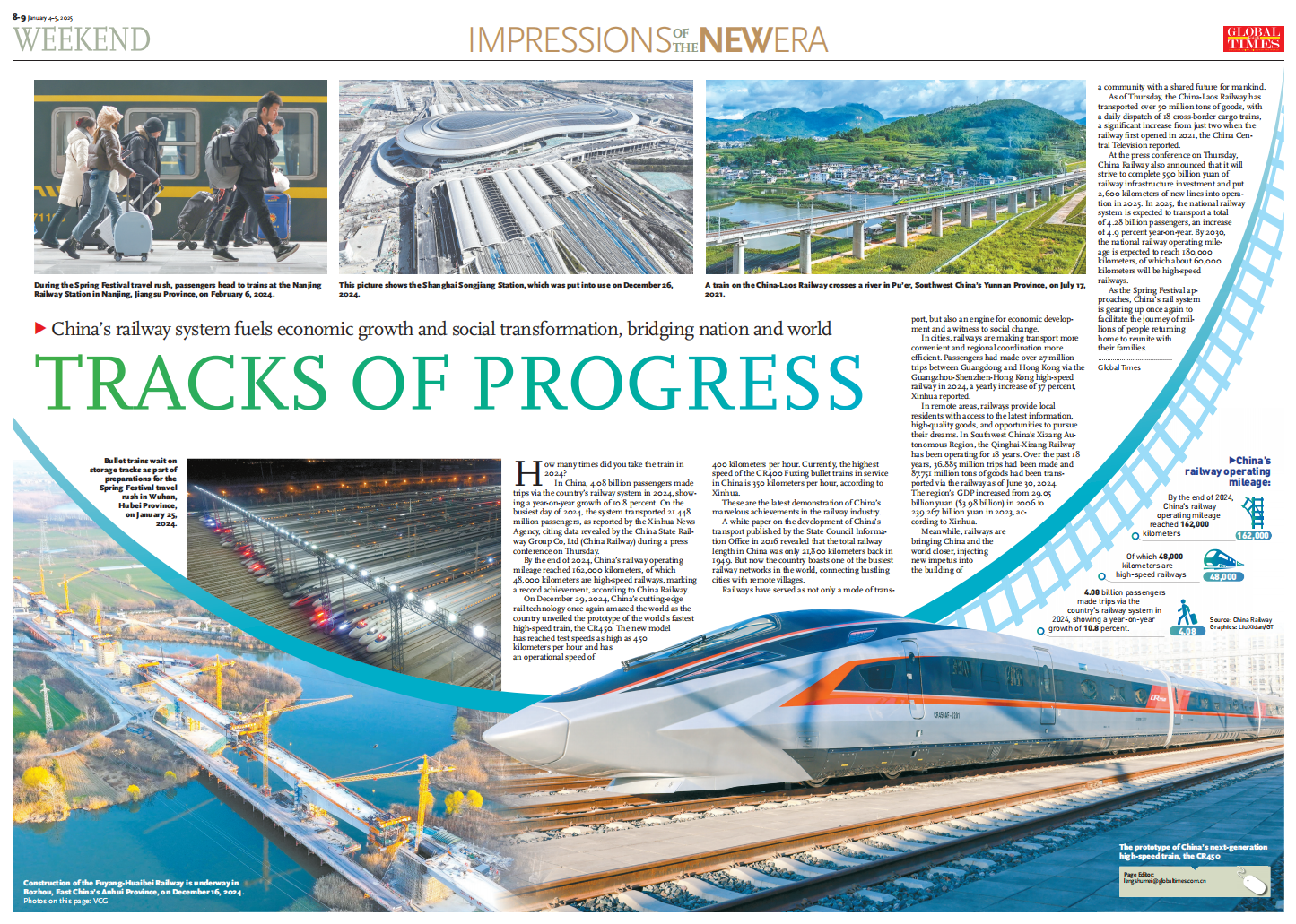 By the end of 2024, China's railway operating mileage reached 162,000 kilometers, of which 48,000 kilometers are high-speed railways, marking a record achievement, according to China Railway.