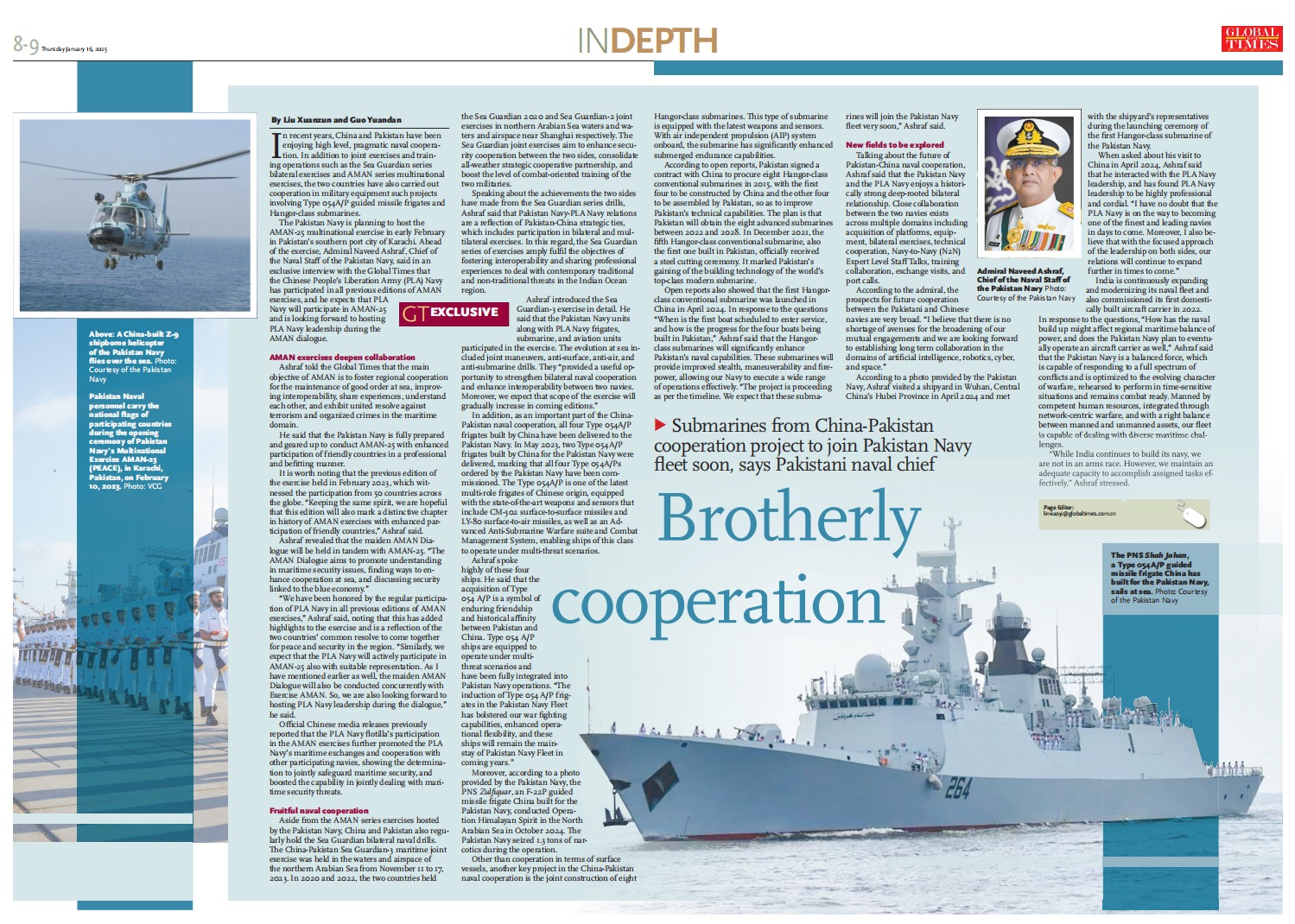 The Pakistan Navy is planning to host the AMAN-25 multinational exercise in early February in Pakistan's southern port city of Karachi. Ahead of the exercise, Admiral Naveed Ashraf, Chief of the Naval Staff of the Pakistan Navy, said in an exclusive interview with the Global Times that the Chinese People's Liberation Army (PLA) Navy has participated in all previous editions of AMAN exercises, and he expects that PLA Navy will participate in AMAN-25 and is looking forward to hosting PLA Navy leadership during the AMAN dialogue.