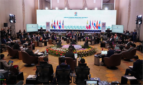 ASEAN countries' national flags are shown at the venue of the ASEAN Foreign Ministers Meeting in Langkawi Island, Malaysia, on January 17, 2025. Photo: VCG