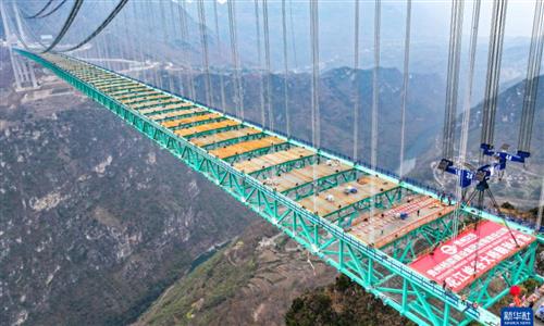 Construction proceeds on the Xunjiang Bridge in Wuzhou, South China's Guangxi Zhuang Autonomous Region on January 25, 2025. Guangxi plans to complete investment of more than 500 billion yuan ($69.02 billion) and push forward more than 2,200 key projects in 2025, according to the local government work report. Photo: VCG