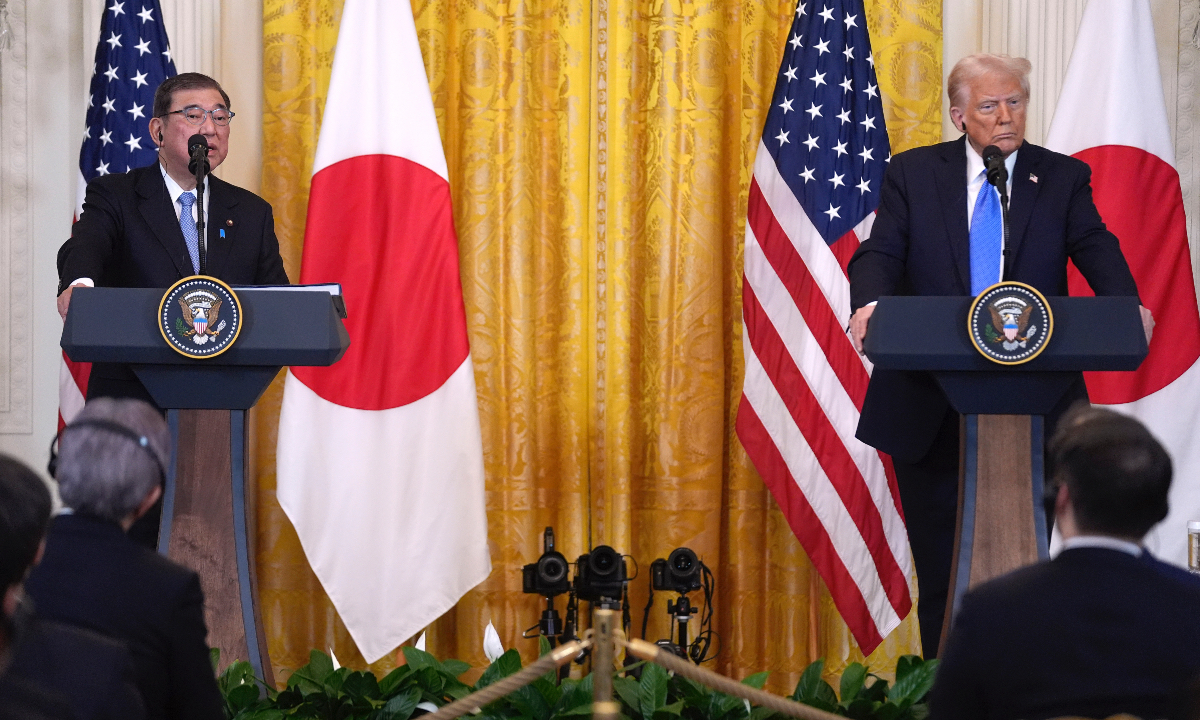 Japan's Prime Minister Shigeru Ishiba (left) speaks during a news conference with US President Donald Trump at the White House, in Washington DC, on February 7, 2025. Photo: VCG