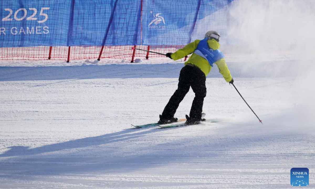 Lin Hao of China competes during the Freestyle Skiing men's freeski slopestyle final at the 9th Asian Winter Games in Yabuli, northeast China's Heilongjiang Province, Feb. 11, 2025. (Xinhua/Mou Yu)