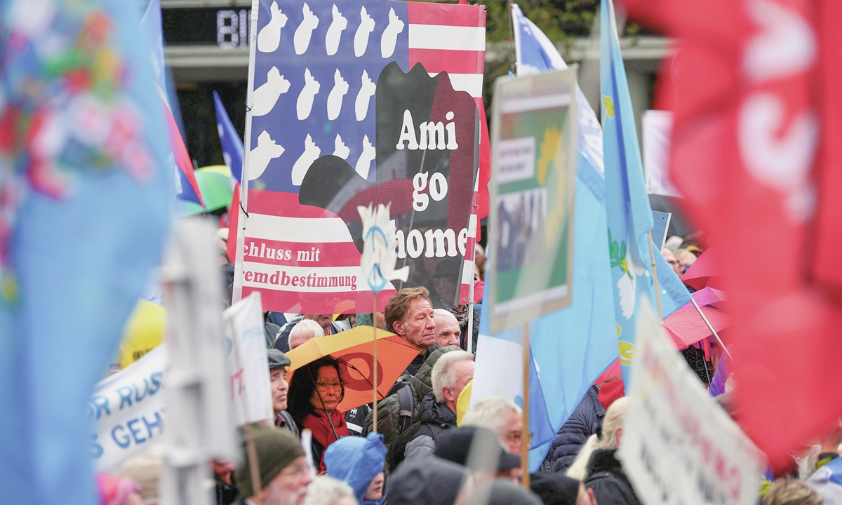 Tens of thousands of German people gather to oppose the continuous shipment of weapons to Ukraine and to protest against the US and Western countries igniting the Russia-Ukraine conflict on October 3, 2024. Photo: IC