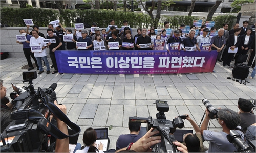 A vehicle carrying impeached South Korean President Yoon Suk-yeol leaves a court in Seoul, South Korea, on February 20, 2025. Yoon appeared in a Seoul court on the day for his first trial hearing on charges of insurrection in the country's first criminal prosecution of an incumbent leader, according to Reuters. Photo: VCG