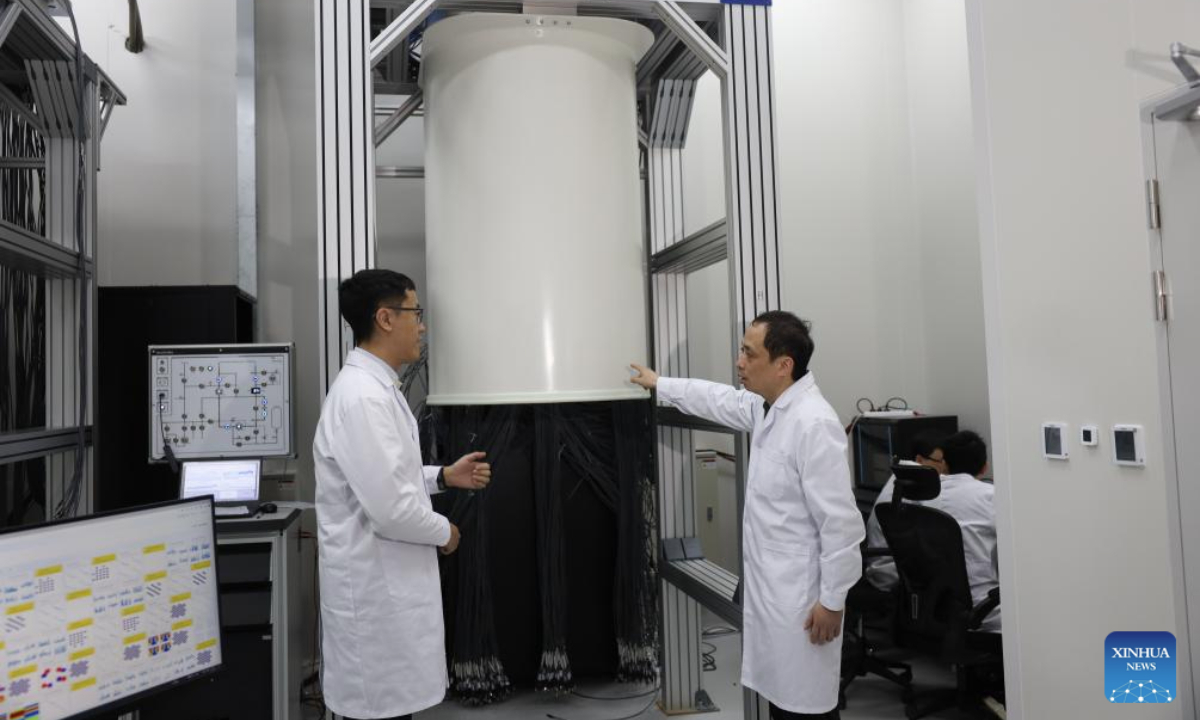 Chinese quantum physicist Zhu Xiaobo (R) has a discussion with a student at a laboratory in Hefei, east China's Anhui Province, on March 3, 2025. Chinese scientists unveiled a superconducting quantum computer prototype named "Zuchongzhi 3.0" with 105 qubits on Monday (Beijing Time), marking a breakthrough in China's quantum computing advancements. The achievement also sets a new record in quantum computational advantage within superconducting systems.(Photo by Dai Rui/Xinhua)