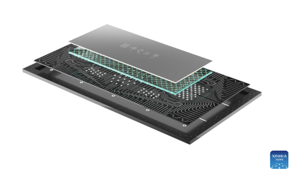 This schematic diagram provided by the University of Science and Technology of China shows the chip of "Zuchongzhi 3.0". Chinese scientists unveiled a superconducting quantum computer prototype named "Zuchongzhi 3.0" with 105 qubits on Monday (Beijing Time), marking a breakthrough in China's quantum computing advancements. The achievement also sets a new record in quantum computational advantage within superconducting systems.(University of Science and Technology of China/Handout via Xinhua)