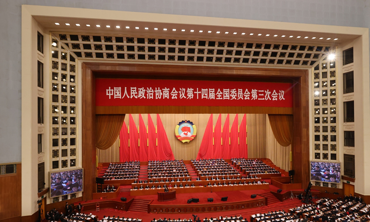 The opening meeting of the third session of the 14th National Committee of the Chinese People's Political Consultative Conference (CPPCC) is held at the Great Hall of the People in Beijing on March 4, 2025. Photo: CNS
