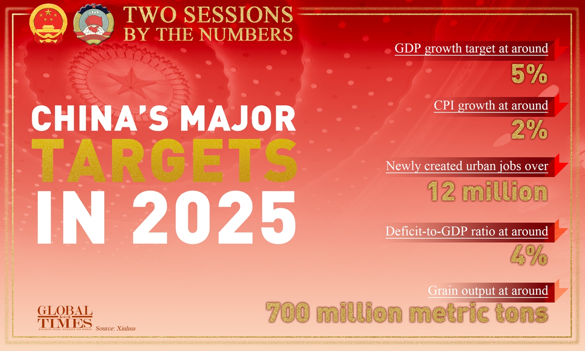 Meanwhile, the growth target is in line with some foreign financial institutions' expectations. In a research note shared with the Global Times ahead of the release of the official target, researchers at Standard Chartered, a UK-based bank, said that they expected a growth target of about 5 percent for 2025, noting that local two sessions have revealed growth targets between 4.5 percent and 7 percent, resulting in a weighted average growth target of 5.3 percent.