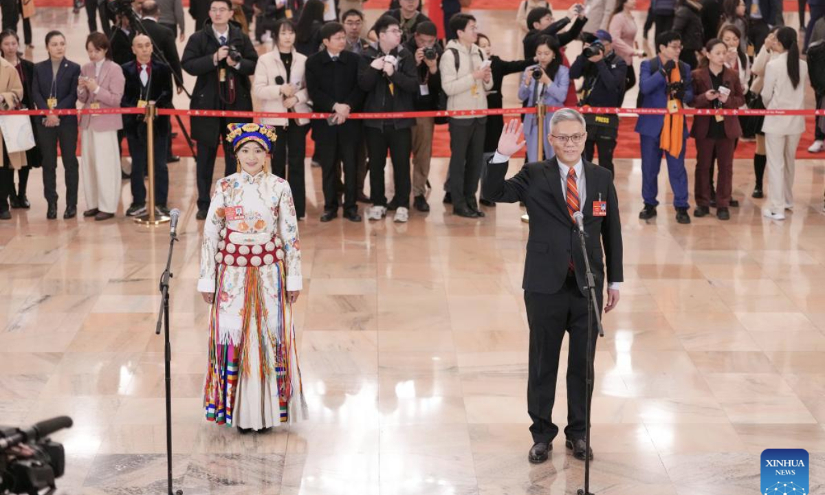 Deputies to the 14th National People's Congress (NPC) attend a group interview ahead of the opening meeting of the third session of the 14th NPC at the Great Hall of the People in Beijing, capital of China, March 5, 2025. (Xinhua/Zheng Huansong)