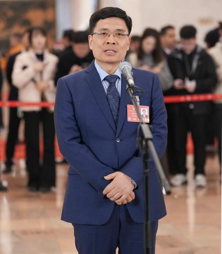 Zhou Yunjie, a deputy to the 14th National People's Congress (NPC), attends a group interview ahead of the opening meeting of the third session of the 14th NPC at the Great Hall of the People in Beijing, capital of China, March 5, 2025. (Xinhua/Liu Dawei)