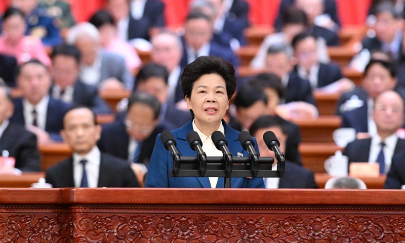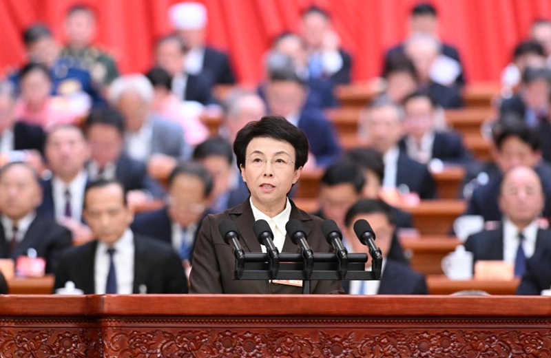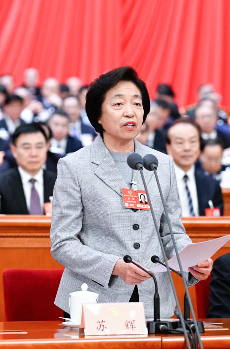 Zhao Yingmin, a member of the 14th National Committee of the Chinese People's Political Consultative Conference (CPPCC), speaks at the third plenary meeting of the third session of the 14th CPPCC National Committee at the Great Hall of the People in Beijing, capital of China, March 9, 2025. Photo: Xinhua
