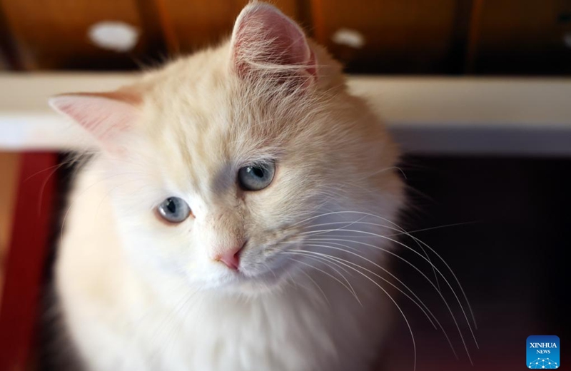 A Turkish Angora cat is seen at the Angora Cat Protection, Sustenance, and Promotion Center in Ankara, Türkiye, March 6, 2025. To rescue the Turkish Angora, one of the world's oldest cat breeds and an iconic breed in Türkiye, the Angora Cat Protection, Sustenance, and Promotion Center in Ankara has initiated programs to revive its declining population and preserve the breed's genetic lineage.(Mustafa Kaya/Handout via Xinhua)