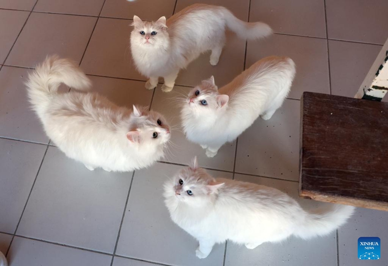 Turkish Angora cats play at the Angora Cat Protection, Sustenance, and Promotion Center in Ankara, Türkiye, March 6, 2025.To rescue the Turkish Angora, one of the world's oldest cat breeds and an iconic breed in Türkiye, the Angora Cat Protection, Sustenance, and Promotion Center in Ankara has initiated programs to revive its declining population and preserve the breed's genetic lineage.(Mustafa Kaya/Handout via Xinhua)
