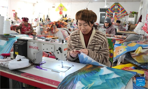 Kite enthusiasts fly four-line sport kites in Handan, Hebei Province on March 12, 2025. Four-line sport kites are advanced kites that feature four control lines, allowing for precise maneuvering and complex aerobatic tricks. These kites are commonly used in competitions and recreational flying by enthusiasts who enjoy dynamic and skillful kite performances. Photo: VCG