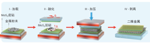 Fabrication process of 2D metal materials through the atomic-level manufacturing technique called van der Waals (vdW) squeezing Photo: Courtesy of the Institute of Physics of the Chinese Academy of Sciences