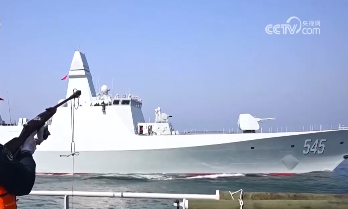 Luohe, which is the PLA Navy's first Type 054B frigate, was officially commissioned at a naval port in Qingdao, East China's Shandong Province on January 22, with the hull number of 545, the PLA Navy announced at the time.