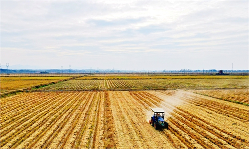 A tractor plows stubble in a field to prepare for sowing canola seeds in Nanchang, East China’s Jiangxi ...