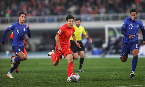 Chinese national football team players interact during a training session in Hangzhou, East China's Zhejiang Province on March 24, 2025, as they gear up for the crucial World Cup Asian qualifier against Australia on March 25. Photo: Cui Meng/Global Times