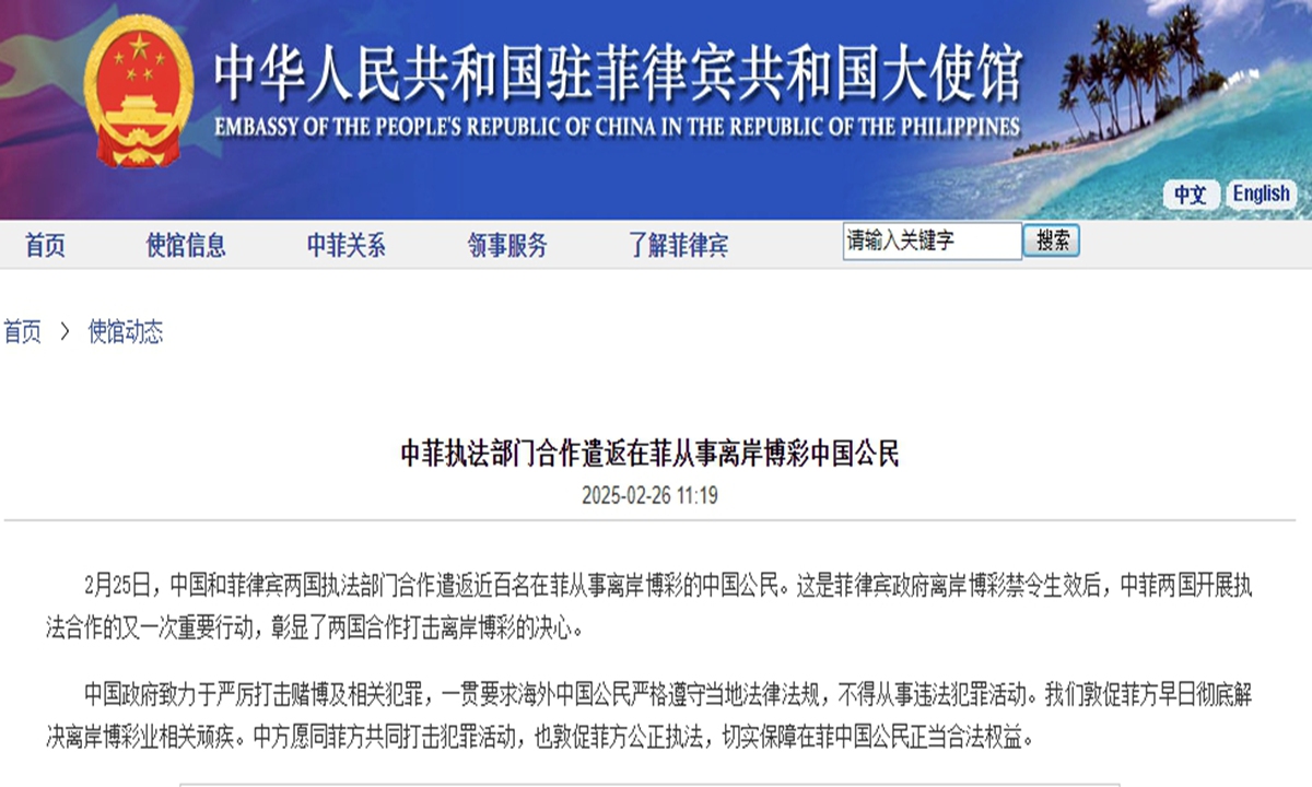 In Tuesday's statement, the Chinese Embassy reminded Chinese citizens in the Philippines to pay close attention to the local social security situation and earnestly strengthen security precautions and emergency preparedness. Reduce unnecessary outings and stay away from political gatherings and crowded places; Comply with local laws and regulations, and beware of falling into security risks and traps.