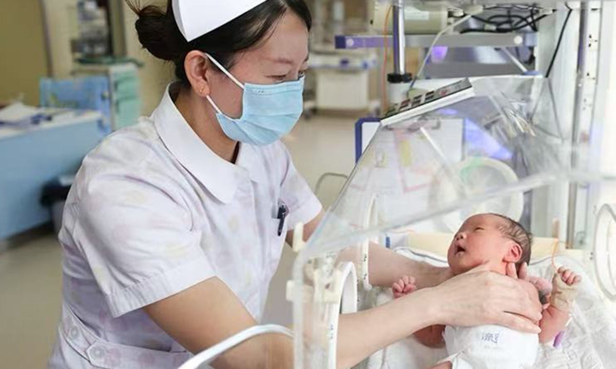 A medical staff member cares for a newborn at the neonatal care unit of a hospital in Lianyungang, East China's Jiangsu Province on January 1, 2024. Photo: VCG