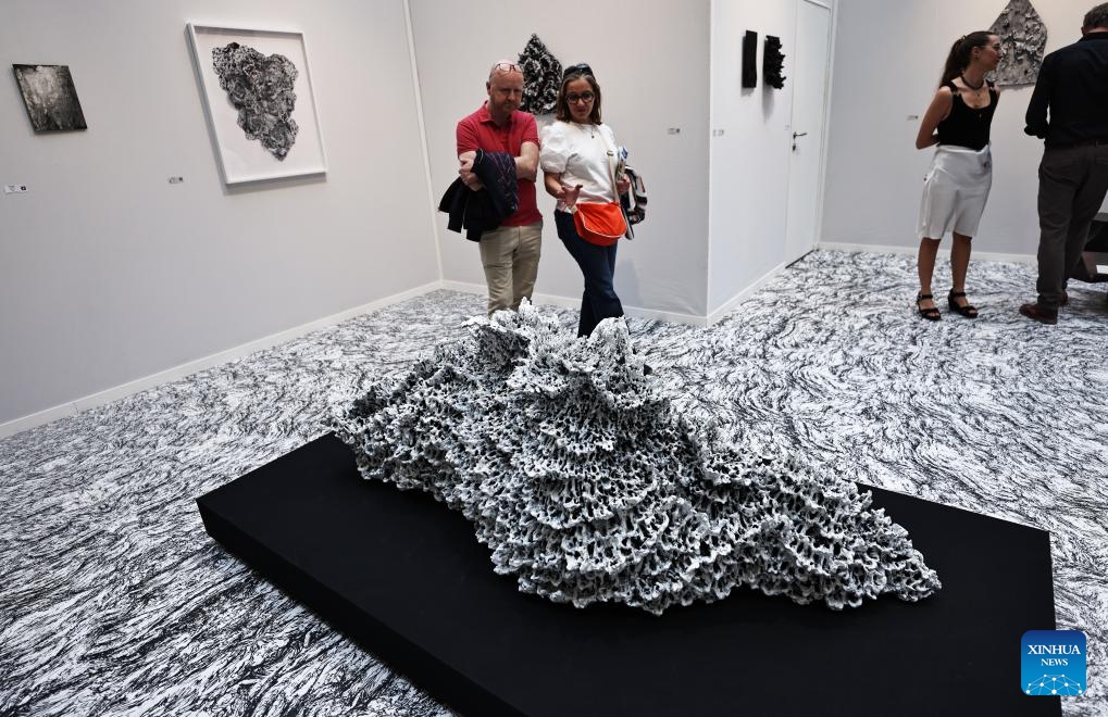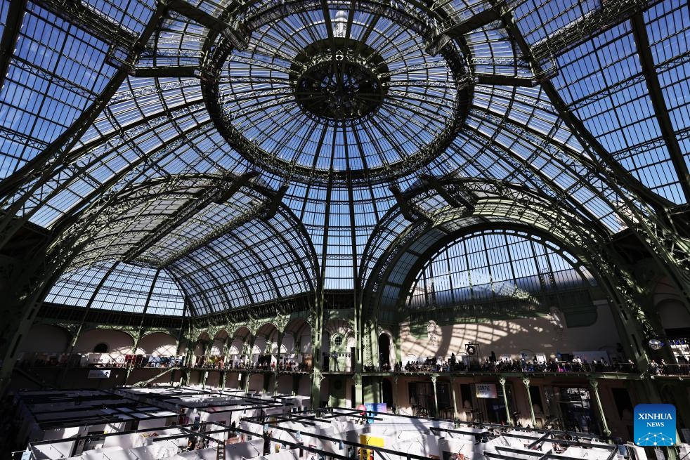 People visit the Art Paris at the Grand Palais in Paris, France, April 6, 2025. Art Paris, the leading spring event for modern and contemporary art, was back with a bang at the Grand Palais from April 3 to 6. (Photo: Xinhua)