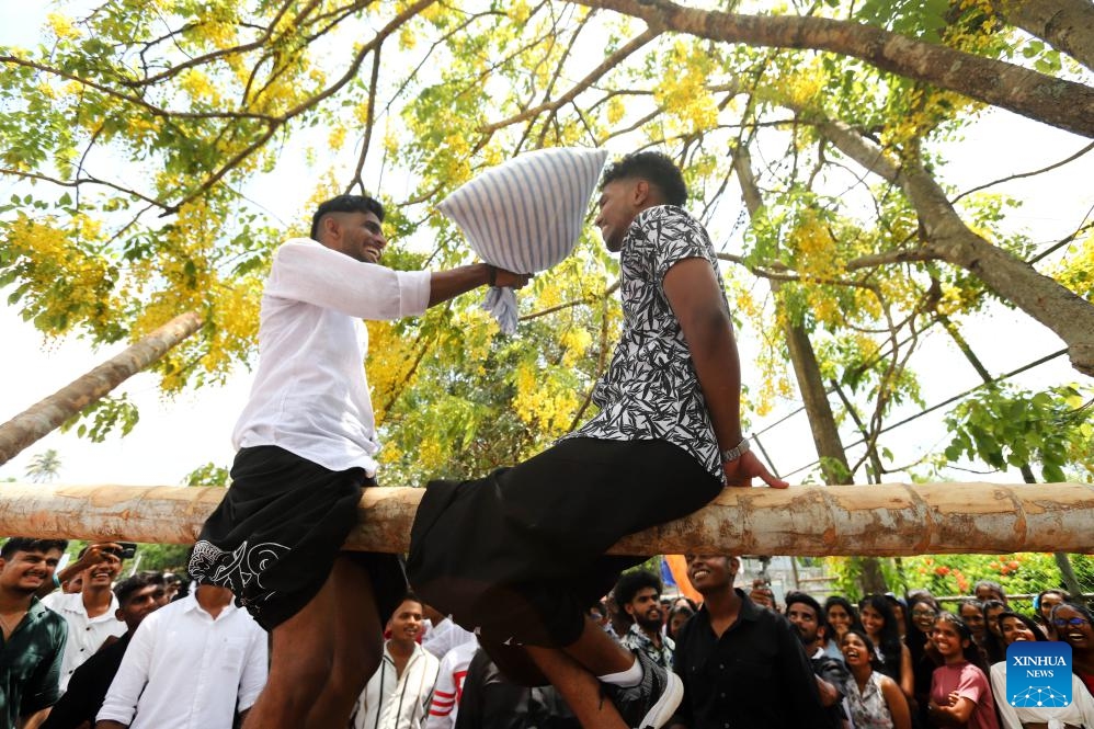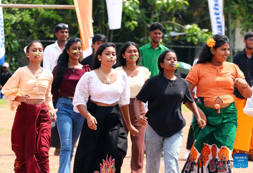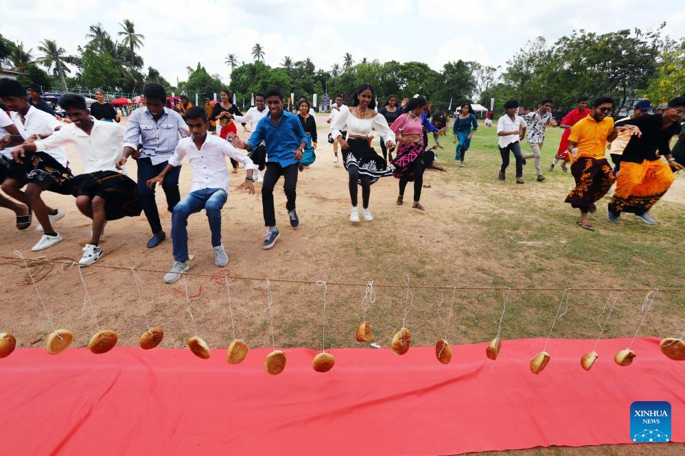 People play a traditional game to celebrate the upcoming Sinhala and Tamil New Year in Colombo, Sri Lanka, April 8, 2025. Sri Lanka's Sinhala and Tamil New Year falls on April 14 this year, with traditional games being organized across the country to celebrate the occasion. (Photo: Xinhua)